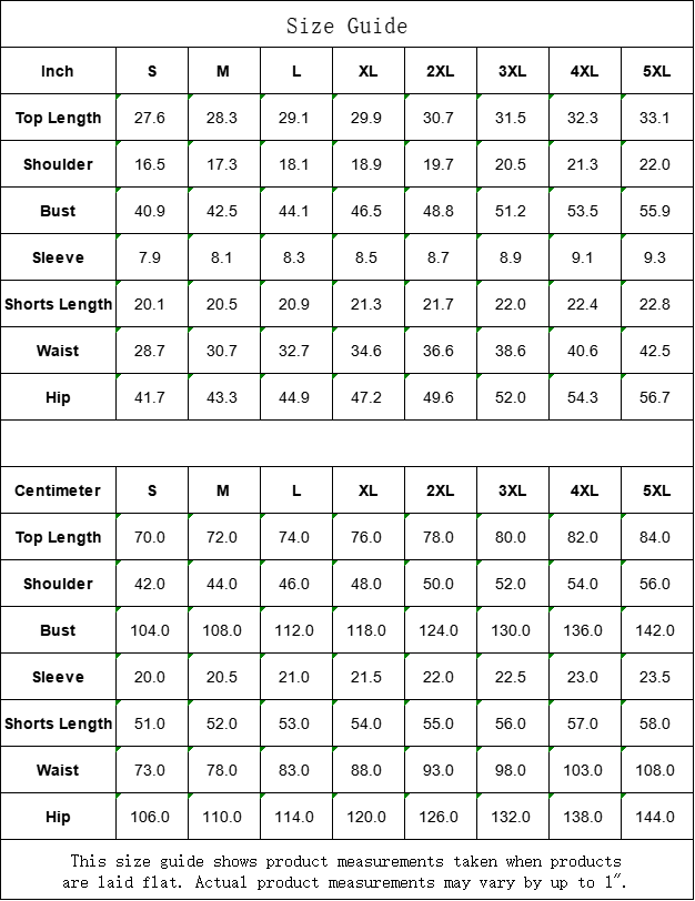| Shorts Length | 20.1 | 20.5 | 20.9 | 21.3 | 21.7 | 22.0 | 22.4 | 22.8 |