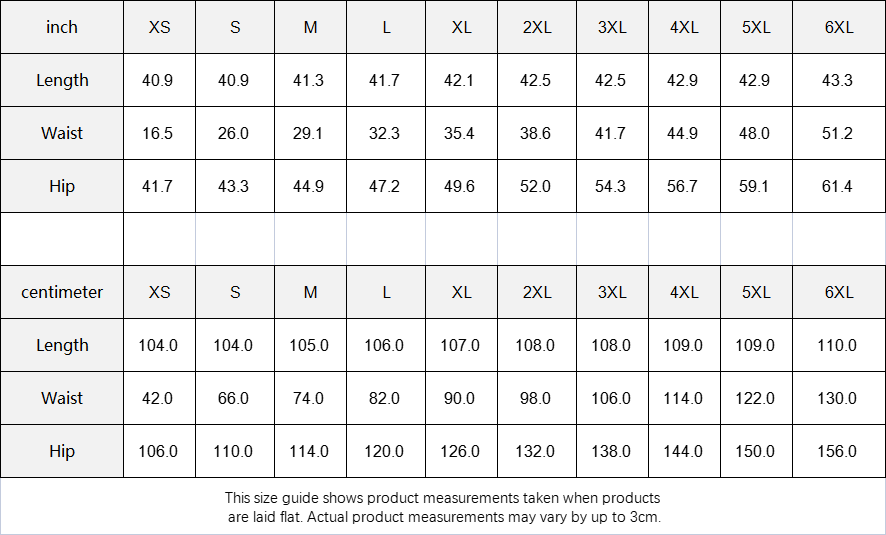 | centimeter | XS | S | M | L | XL | 2XL | 3XL | 4XL | 5XL | 6XL |
