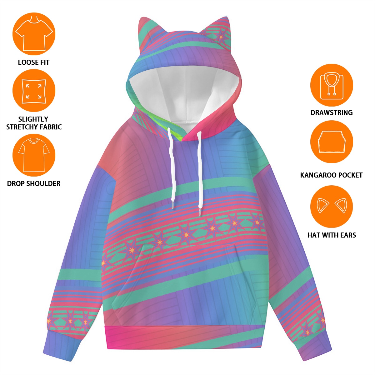 Cute cat ear decoration and high quality printing make it a very fashionable and special hoodie, provide much fun.