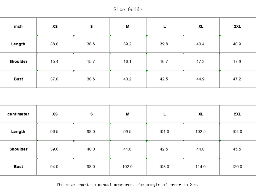 | Bust | 94.0 | 98.0 | 102.0 | 108.0 | 114.0 | 120.0 |