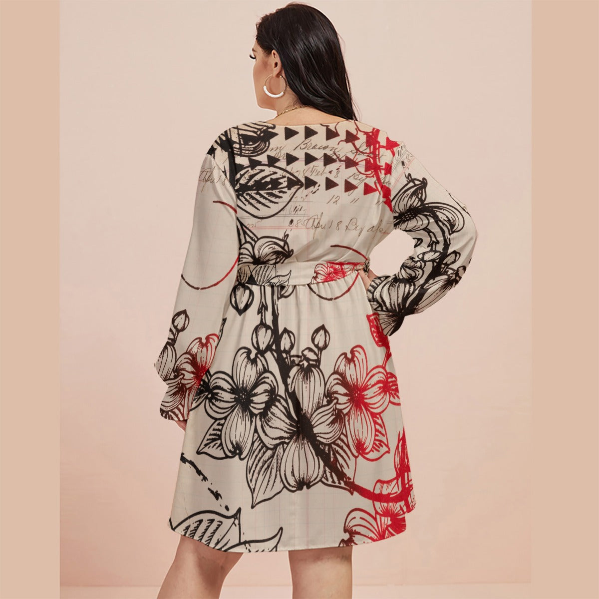 This design was created by our owner, 2S Choctaw artist, Kristin Gentry. She/They hand pulled silkscreen prints onto ledger paper from 1937. The serigraph created was turned into the fabric for this collection. Wearable ledger art to continue our stories... She wears this piece the most often, and finds the dress/shirt very comfortable to wear. They like the elastic in the wrists--- it doesn't hurt or bind their plus size body.