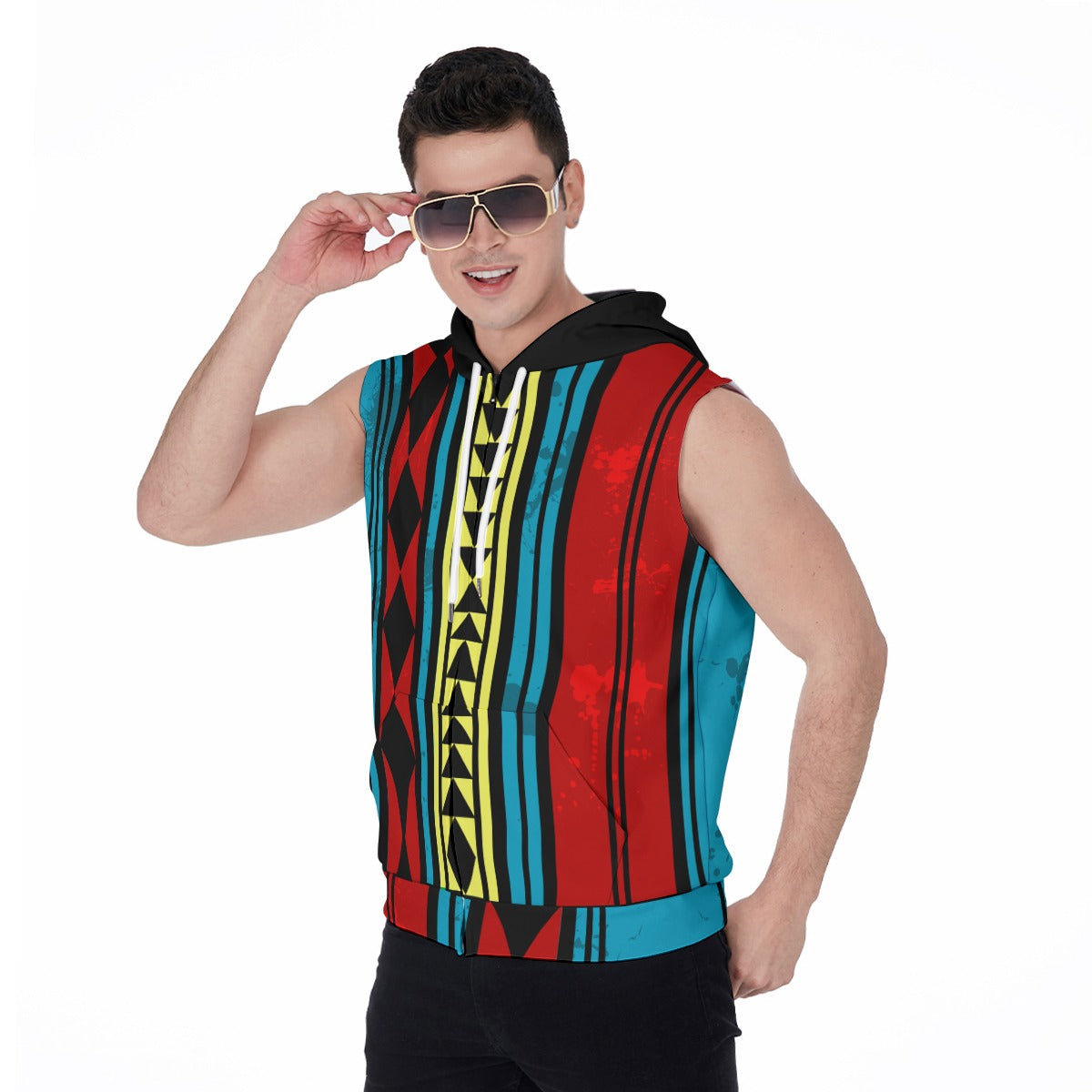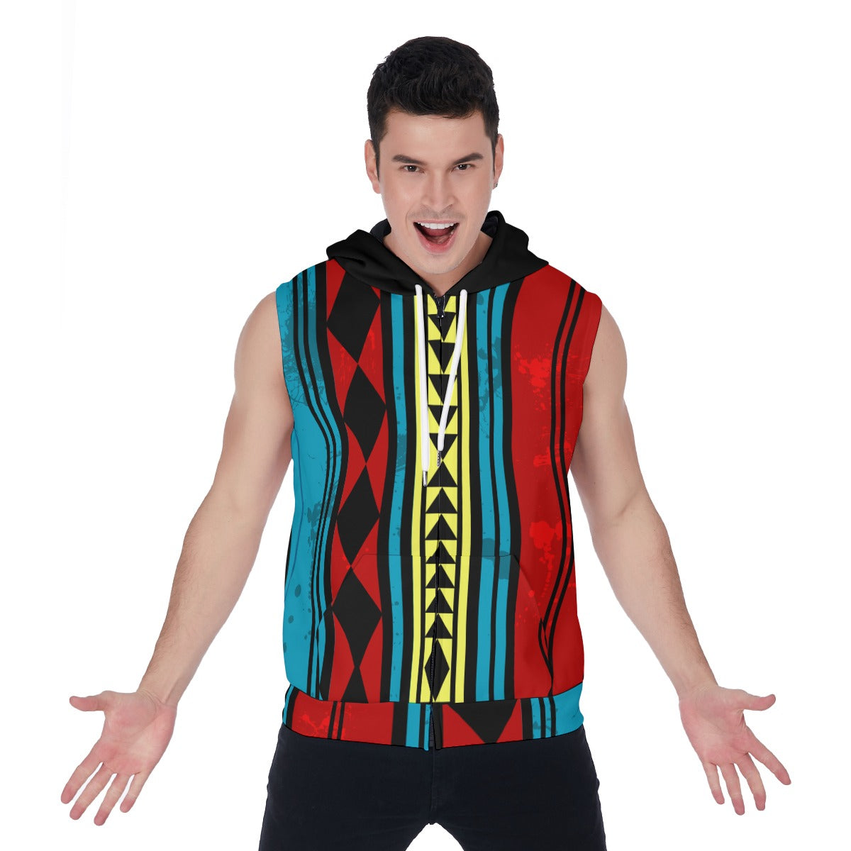 Athletic slim fit sleeveless hoodie with drawstring hood, two side pockets, and zipper closure; Suitable for gym workout, costumes, or every day life. Wear it as a solo piece or layer it over for a solid outfit.